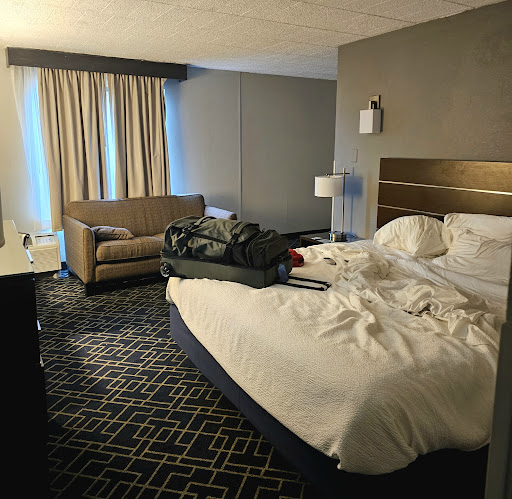 Read more95% of the experience was pretty bad almost laughable. My wife wasn't laughing at all but it was just so ridiculous one thing after the other in the first ten minutes of the first room they gave us. We walk in they spent a little money in the lobby so you think the place is going to be ok. lol we got a two bed room right off the bat the flange was leaking a river of water on the bathroom floor from the toilet tank. Then I went to sit on one of the beds to call the front desk about the toilet and the front corner of the queen bed hit the floor because one of the legs were gone so it made the back other side of the bed go up off the ground and in the air about 4 ft. The repair guy came really fast but while we were waiting for him to come we tried the TV and that was broken. Then as the repair guy and the head lady from the front desk were talking outside of our room to try to find us another room three other rooms have been fixed with new toilets and they all leaked. They finally got us a new room with the beds that weren't broken a TV that works and a bathroom toilet that didn't leak. But then their drop ceiling was filthy and I used a white hand towel to wipe water up off the floor and it came up black with dirt not that I was really surprised but it was pretty filthy. The hotel was basically maybe an eighth full of people and the hotel across the street that was a Hampton inn by Hilton was packed full so obviously all those people knew what we didn't. So it's probably definitely worth it to pay the extra $20 to stay at the Hampton inn across the street. the only good thing about the place and trust me they didn't spend a dime on any of the rooms inside they only spent money on their lobby the only good thing about the place was its breakfast aside from the 2 inches of dust on all the machinery it was probably the best breakfast I've ever had at any hotel for free. And like I said all the people that work there were very nice except for one lady we talked to on the phone a few days prior to booking the room she was definitely a rude cranky lady and she definitely hates her job obviously. But the best thing was is that the new room that we got that had a toilet that ended up not worked it was clogged and I had to ask for a 30-year-old plunger from the front desk and plunge the toilet myself when none of us had put anything in it yet so all in all it was a pretty bad experience I would definitely not recommend it to anybody and I will chalk it up to one of the worst places...