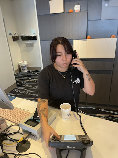 I had one of the worst experiences in my life all bc Holiday Inn let Amy, a child play manager. This week my husband went there and reserved and paid for a room for today to have my daughter’s 9th birthday party, which we have had there for the past three years. When making the reservation he asked if there was a party room bc last year we had the cake at the pool. He was told, no there was not a party room, but we could serve the cake in the lobby. Today I arrived today at 1:30 for my 2:00 party and was greeted by nasty Amy at the desk. I asked where she would like me to put my drinks and pop. She replied, oh you can’t have a party here. You have a king room and can only have 4 people, and you can’t have the cake in the lobby, and you can’t use the pool until check in time at 4pm. I called my husband and she talked to him telling him the same thing. He asked if she could call the manager. She called the manager, said they didn’t answer. My husband then pleaded with her to make the decision to stand behind what we were told and allow our party bc in 15 minutes 10 mothers would be there to drop their daughters off. At this point I’m in tears in the lobby . Amy told him no, it’s company policy, and to come up for a refund. When he arrived he took her picture as she attempted to give him our refund. Amy couldn’t figure out how to do a refund and told him to leave and it would be emailed to him. He said here is printout from when I reserved the room, I would like a printout of my cancellation. She then called 911 saying that he was breaking the law by taking her picture. There’s Amy below, lost trying to do her job.