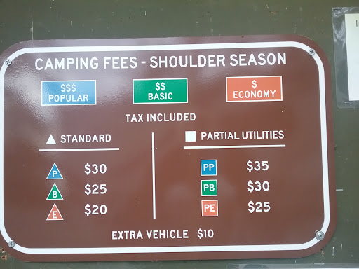 Great campground (should be 5 stars), but the staff is completely unprofessional (hence the 2 stars). According to their website, their sign, and other campers we talked to, the full hookup RV spots went down to $35 after Sept 15 (see 1st pic of sign). However the girl in the booth said those spots were $40. I told her about the sign and advertised prices in writing, and I didn't feel right about paying more when it was advertised for less. She said the sign was wrong and "they" put up the wrong sign. Not sure who "they" were (management)? Decided to just go to the day use. Went back later and the sign had been changed to the higher prices (see 2nd pic). Were they charging people the higher price but pocketing the extra $5? Shady!