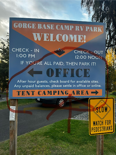 Read moreWe are full time 7 years with an Entegra Anthem. Most our reviews are on RV Parky and vast majority are positive. To sum it up EXPENSIVE, NOISY, NOT BIG RIG FRIENDLY, DIFFICULT TO GET TO AND RUDE. Stay on the Oregon side.|||| ||||When we pulled in it was tight but doable but no parking for our toad. The first night the person across from us generously offered us a parking space on their lot. The next night after a long day of hiking we came back and the nice neighbors had left and I parked the jeep in the same spot to unload. The host informed me that it could only be temporary. I asked if it was rented that night since I would move it immediately if rented. She said no but she would charge me for two sites anyhow and the past neighbor isn’t here and doesn’t own the park. I moved it to their gravel lot down the hill. Let’s be honest very few good RV places don’t have room for your toad and threatening me with a charge for two sites WHEN THEY ARE ALREADY CHARGING OVER $70/NITE is ridiculous. I expect at this price the toad will be parked close to the motorhome.|||| ||||Here are some other reasons I would not recommend this place: 1. Tight for big rigs, 2. Many sites no room for your toad, 3. Small sits squeezed between the road and the rail tracks (luckily the Anthem is well insulated from noise between the trucks braking down the hill and the trains its noisy), 4. No river access and 5. 25 cents per 2 minutes of shower (really?? Thought that was over in the 80’s) We have a nice bathroom and shower in the Anthem but the few RV places I have been who charge for showers are places I would avoid or if I made the mistake of booking was less than impressed. The other thing to be aware of with a big rig is how to get there. Coming from the east on 14 one very tight tunnel we got through but tight (we are 12’ 9”). To the west 5 tunnels on 14 and all tight (I like my ac units). From the south, you have the Hood River Bridge which is a disaster at 9ft wide (a mirror bender as detailed in other reviews – a definite no go). DO NOT GO ACROSS THE HOOD RIVER BRIDGE WITH A LARGE MH.||||Yes, it is full hook up and yes paved but tight, noisy, hard to get to and the host is clueless on how to handle customers. Stay in Oregon...
