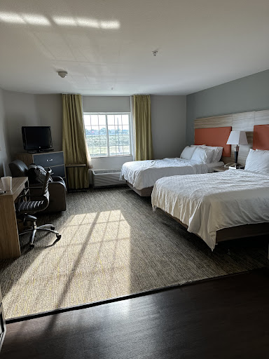 Read moreThis hotel is located in front of a freeway with nothing around it except Chick-fil-A and Panda Restaurant the name of the hotel Candlewood Suites, you would expect the units are suites but surprise!!!! does not have any suites at all. They call the bedrooms... suites with two queen beds 1 bathroom two burner electric stove two plates two bowls two Forks to butter knife cutting board and one knife dish soap dishwasher paper towel measuring cup coffee maker one pot holder and one dish towel. A full size refrigerator a recliner table to work on TV dresser one side table in the middle of two queen beds with a landline that doesn't work. In our unit anyway. The water in the shower is like a drip system so you cannot shower fast because the water is slow. The hotel does not have in house housekeeping. It was a shocking Discovery when we were told in the front desk that we have to stay at least 8 days before we can get housekeeping to clean our room. They only clean rooms once a week!!!!!OMG!!!!!! For real????How unsanitary!!! So does it mean when the person book only two nights or overnight stay it will not be cleaned leanings will not be changed toilet will not be cleaned towels will not be replaced? Just thinking about it makes me imagine horrible things!! When you want your towels replaced you have to bring them in the front desk and they will replace them. If you put your dirty towels in front of your room you will get fined for $25 as well as when you put your garbage bag in the front of your unit, a fine will be added to your bill. Today the lady in the front desk woke up on the wrong side of the bed. She is not happy to help. And all these penalties were not explained during booking process and check- in. To summarize it all if you're not staying more than a week clean your own room bring your dirty towels to the front for a placement throw away your garbage and the garbage can by the stairs or not coming to this hotel at all. If you do ask all the questions before you book your rooms. And make sure you keep busy away from this hotel because it's mainly just for sleeping in and out all day. It's not a place to relax and enjoy your stay, unless these issues does not...