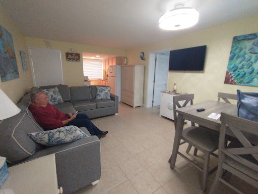 Read moreUnit 224. Stayed in Sept, 2019, great beach front view for sun rises, great patio right out front door for sitting, but a little confused by conflicting check in process as we were told to pick up parking permit, sign voucher and get unit access key at front office only to find that the office was closed on all days except Friday and Saturday but we were checking in on Tuesday! Spent an hour on the phone trying a variety of numbers to resolve issue. Owner’s voice mail box full and not accepting new messages but was able to receive an email to resolve issue for us by sending us updated check-in process info. Also found 2 used bathroom wash clothes and trash on bath counter upon arrival- not happy since we were asked to pay a cleaning fee but bathroom wasn’t spotless for us when we checked in- maybe just poor cleaning service. Very beachy decor, small kitchen, and had a 2-person dining table. Lighting in single bedroom unit was somewhat dim as no bedroom windows for natural light. Had allot of extras for comfort but really, location right on the beach was the highlight. 2nd Tv in the bedroom was a nice touch. Bring your own linens and bath towels. Access to 3 bikes a nice touch! Building was a typical multiple story concrete structure with balcony walkways but owner took allot of time to give the unit’s decor and extra’s a real beachy feel. 2 pools., but only 1 parking space per unit. A/c unit very high up on living room wall and difficult to reach to change...