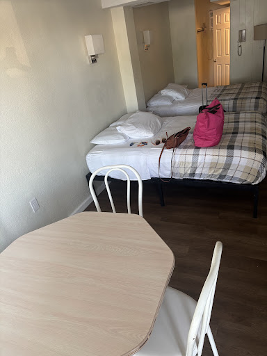 Read moreWhen we checked in we were told where our room was..... go up the stairs make a left at the top of the stairs. OK well there was this opening that was about a foot & half wide. The view was of the back of another hotel. We were off the main gathering deck. The room was damp, curtains falling off the rod, door(even being bolted) didn't feel secure, the beds had no summer quilts, no bed spreads on them but two unmatching throw blankets folded at the end of the bed......no maid service either. When I say this room was truly forgotten about it was. It looked like they took what was left in stock from furniture to lighting fixtures and threw it in this room. I wiped down the bathroom and kitchenette daily with the clorox wipes I brought with me. Four wash clothes and a roll 1/2 of toilet paper for two people. We were basically forgotten about. Pool got cleaned eventually. Last night we were there we were woken up to 4 kids under the age of 12 at 1245am screaming and sitting outside our room. It took over 2 hours for us to fall back to sleep. When we checked out the sign on the door said 9am-9pm.....it was after 10am no one was there. So I dropped the key in the drop box and called multiple times...got the answering machine. Trust me this room wasn't cheap. This will be some place I will never stay at again!!! Suggestion READ all the reviews.