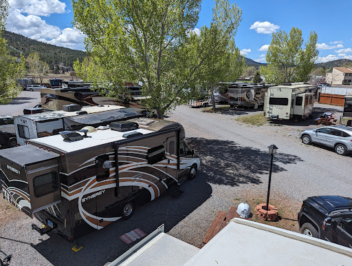 We stayed here for ten days while visiting the south rim of the Grand Canyon. The office building is the first building on your left as you pull in. The campground has two rows of back-in sites along the southern and eastern edges of the park, while the other three rows of sites are pull-throughs. All of the roads within the campground and the sites have gravel surfaces, with strips of grass and mulch between most sites. All sites have picnic tables and cable hookups. Some sites have an adjacent tree tall enough to provide shade: seemed like most of the sites in the middle row of pull-throughs had at least one tree. No sites were completely shaded. The location of the hookups vary: our site (49), in the middle pull-through row, had the hookups near the front, while other sites had them closer to the middle or the rear.