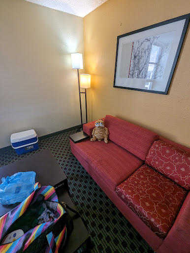 Read moreSTAY AWAY!!!!! We purchased a king bed and got 2 full side bed. The whole place smell like cigarette. The pool was getting renovated, instead of renovating the pool what they need to do was to put the money in working key cards and renovation to the whole entire place instead of the pool. This looked like a half way house more the a hotel. The place is extremist very very VERY OLD and dingy. We got there and the room door was already open we went back to the front desk and asked as to why and if we had the right room. They mention that yes and the maid hasnt finished cleaning the room and she may be at lunch. Mine you it was closes to 430 already. I looked at the pillow and it looked like it had blood stains on it. I sat on the bed oh lord i almost fell off. The bed was so worn out. We had no towels that's probably cuz the main hasnt finished cleaning yet. And then the door why didnt the key card work. What does that mean....we couldn't leave our stuff or leave until we check out??? If we were to go out and thats a giving because we wouldnt be able to open the door cuz the key card didn't work. Yeah no thank you. The maid came by and we let her know the room still dirty the sheets look lile it had blood stains and she said well you get what you paid for. No breakfast no pool not safe as all. I eish i took some picture of the place because the picture they had are definitely not what it looks like. Dirty hallway, smells like cigarettes, dirty doors, dirty sheets dirty sofa chair, dirty rugs, dirty everything. At least the front desk person was nice and helful and accommodating when we asked...