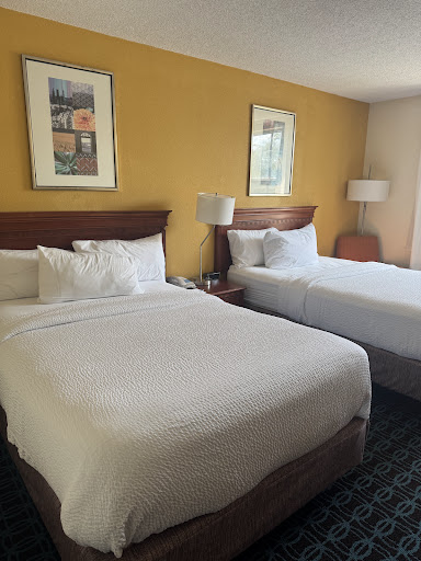 While Williamsburg has been a home away from home for me, there are some places that need a bit of work. The Fairfield inn and suites sits the Ihop restaurant on Richmond road and is a plain brick building much like other Williamsburg hotels. Inside you are met by the front desk staff. While they do the job they need too their customer service is a bit lacking and some guests may feel not as welcome. The carpet in the front lobby and at points in the hotel is dirty and work out. To get to the rooms, you can journey through the lobby down to an elevator or go to one of the outside doors opened by your key card. The room I stayed in was ok. Upon entry to the room it was rather small compared to other hotel rooms I've been in on trips to Williamsburg. It had 2 double sized beds which was a bit small for my group of 4. But the beds were comfortable with the only issue being hair on the decorative pillows. The room did give a lot of amenities such as a refrigerator, microwave, hair dryer and coffee maker. The bathroom was kept clean and the only real issue was a cracked sink but it seemed to be a superficial crack.