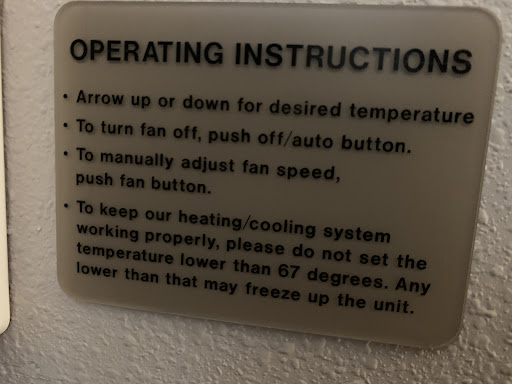 When we walked into the room we were surprised that it was cool since it was very hot outside. It was clean and didn't smell from room fresheners that some places use. Comfortable beds and nice area with reclining chair to watch TV.