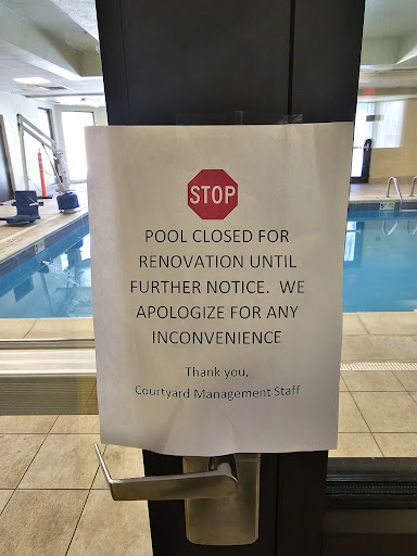Read more4.2 stars on Google. I'm not sure why. This is a dumpy and dreary Marriott with indifferent staff. I'm a Marriott Gold Elite member. I reserved using my Marriott free night stay awards. Walking in the front entrance, I noted quite a bit of trash in the flower beds (yes, it's winter, turning to spring, but clean the place up). At check in, the woman was watching TV in the lobby, ran over, did not acknowledge me as a Gold Elite member, but quickly checked me in, room 317. The lobby and surrounding areas were dark and depressing, with a view of the indoor pool, completely torn apart with pool stuff laying all over the place. The elevator to the 3rd floor was the noisiest I've heard. Exiting the elevator on the 3rd floor, our assigned room (317) was right next to the elevator. Back down to the reception desk to ask to be assigned to a room away from the elevator (which is in my Marriott profile). Was moved 4 doors down to room 309. Upon entering, we were greeted with a small room that had a partially detached gasket on the bottom of the door, with a huge monstrosity of a couch and ottoman taking up most of the free space in the limited floor space available. Using disinfectant wipes, we wipes down the flat surfaces of the room, noting dust and dirt on most of the flat surfaces. The sink drain emptied very slowly (partially clogged). We spent our 2 day stay running into each other moving around the room. On day two of our stay, housekeeping took our used towels, but did not leave any clean ones. Back down to the check in desk to get more. On check out day, we requested late check out (2 p.m. is standard for Gold Elite members). The new reception woman told us she could "give us till 1:30 p.m. because I was not on their 'list'..." whatever list that was. I did not inquire, at that point I just wanted to leave. On the positive side, the room was very quiet, near most things you could want, with easy freeway access. Certainly not a property worth of a 4.2 star Google...