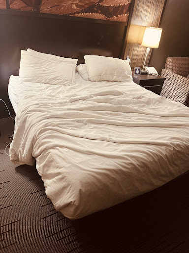 Unfortunately my day didn’t quite go as planned so I had to stay in the area again tonight and this is the most conveniently located Hilton property to where I’m working. I called the hotel to ask if the hot water situation was fixed and they said yes so I booked another king room for tonight. Arrived here around 11:15 and couldn’t seem to get the Hilton app to work to get checked in to the room type I booked and paid for. The associate at the front desk was kind but unfortunately having issues with the computer to get us checked in. I said I was just there because the app wouldn’t let me select the room type I booked and they informed me it’s because they don’t have any of that room type available (so why even let me book it Hilton?). It’s late and my wife and I are tired so we just said the heck with it and checked in using the app and selecting the lesser grade room type that was all that was available. We went and parked our car in the attached garage and then proceeded to try and enter the hotel where we couldn’t because the Hilton app wasn’t working for the digital key feature. We used the phone and called the front desk and they buzzed us in. This part is likely important to detail for what we encountered next…we entered and then tried to use the elevator up to the lobby from the parking garage and to our surprise when the elevator door opened there was someone completely passed out inside that was clearly under the influence of something. Needless to say we opted to use the stairs. Fortunately we were able to get a working room key from the front desk to get to our room. While waiting I had made a comment that for all the nights I’ve stayed at Hilton properties, this one is by far the worst ever that I’ve stayed at. Their response…”I wish I could say otherwise but you’re probably right”. We took the key and were in our queen room for the night that we didn’t book. Hopefully I can get a hot shower in the morning. We weren’t offered the “signature” chocolate chip cookie or bottles of water during check-in either one of the last couple of nights here either…