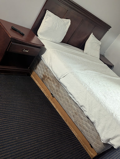 Read moreI should have realized this place was subpar by what looked like a bulletproof window between me and the front desk. I had to visit this front desk for a new key card each time I used it because it never worked more than once. "Don't put them near your car keys" was the only helpful suggestion they could offer. Some of my towels were filthy and looked like someone stepped on some of them with dirty shoes. The bathroom was disgusting. Although it was non-smoking room, there were cigarette burns on the tub. The sink had no stopper, just a hole, and the floors were sticky. I flipped the switch for the exhaust fan. The squealing of metal on metal is something that I don't think I can ever forget. The room itself smelled like a combination of sweat and some weird perfumed cleaner that was used to mask it. It didn't. The walls were chipped and someone spackled over some areas, but forgot to paint over them. The table by the door had bugs crawling on it. The stench of pot found its way through my door that had visible sunlight shining through the bottom and sides. They even found a way to make watching TV miserable. Mine had to be reset using the menu bar each time that I turned it on. There was a mini fridge and microwave- both were filthy. The freezer section had frozen over so badly, there was a mound of ice covering it both inside and out. There was no lamp or nightstand next to my bed - just an overhead light with the switch by the door. You had to carefully maneuver your way to the bed when going to sleep. The only plugs available were half way up the door wall (a number of feet away) and one in the bathroom area, which made charging my cell phone especially challenging. The smells, the filth and the bugs are this hovel's only claims to fame. Why this place has not been condemned by the health department is a complete...
