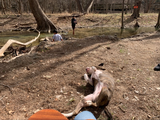 The neighborhood was picturesque and quiet, which we appreciated. However, during our walk, our dog, River, a Retriever-Shepherd mix, ate a lot of grass and vomited once. Upon returning to the cabin, the smell was still present, and River seemed lethargic and unhappy indoors. My partner, Christa, began to feel increasingly unwell and panicked at the thought of spending another seventeen and a half hours in the cabin.