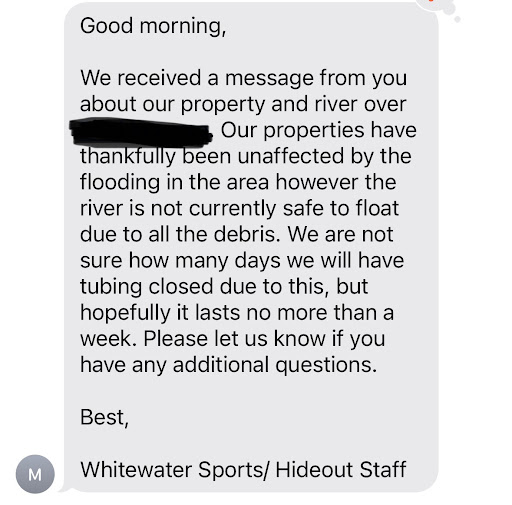 To correct their website, there is not direct access to the river from the cabins as their website indicates, as there is a HUGE drop-off that is protected by gates. It IS NOT a pampered luxury, after check in you can expect to be on your own. Service is way below standard. You will not be able to fish, raft, kayak, or toob from right outside your door. “Never a dull moment”, unless you try to get help from the staff, even in the off season when they were probably about ½ capacity.