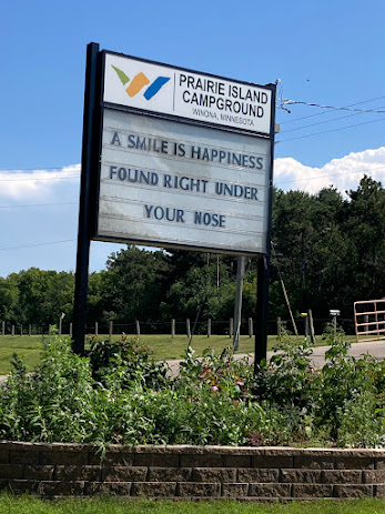 Went to the campground last night, Saturday for their Campfire Concert Series pt 2.on what my weather app said would be the most perfect night. I had emailed earlier n the week to inquire about attending the gig despite not being a camper? Owner Jamie had responded it was open to the public. As we turned in we were too busy looking off in the distances to notice that the stage was RIGHT there next to the Camp Store and just steps from the parking lot! When we sauntered up with our chairs we were pleasantly surprised to see a ring of a dozen chairs around a fire pit. There were even a couple of food trucks in the parking lot, what a wonderful offering. Also took in the sights of the tall sunflowers in a... are those tomatoes? Is that a garden? Along the wall of the Store was all bikes; I didn't inquire if they were rentals or just for any camper to use; regardless a nice offering. While the band was soundchecking I took notice of a woman setting up paints on the two picnic tables n front of the Store... a kids or family activity, flag making? How fun! It was time for the set to start.... the vocalist gave a shout out to owners Jamie and Ann. Jamie took to the microphone to welcome everyone and talk about the campground and how it gives back. I apologize I don't recall all that was said or the definitions. He mentioned the community garden and hat if the crops are laying on the table, help yourself. The campground is part of the SHIP Grant..,so it gets money from the state for the garden and to host these events; despite possibly not being accurate in my description it was an interesting and lovely note. So my review isn't about actually camping but.... if I were to get back in to camping, Prairie Island would be on the top of my list!! From my seat I could see the Fish Cleaning house, a bathroom and the river. Thank you Prairie Island for an enjoyable outdoor event in the most welcoming of venues and wonderful hospitality! As I scanned around during soundcheck... I appreciated that once the gig began you brought out a hat on a racket for band tips! Then mid-show a guy picked it up and brought it around for people to put in their money; very cool. Don't skip past Prairie Island if you're looking for an outdoor getaway.....this place definitely had the nostalgia pumping hard for my youth and all the camping my parents had us doing all summer long. Thank you for all he emotions Prairie Island... last night was hello but certainly not good-bye.....it was... I will be back....to stay and take in all your beuty...