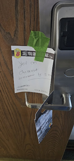 Read moreWe checked in 10/29/21 at around 3:30 pm and the male clerk was extremely high. He could almost not function. We we had to ask for our room keys multiple times. We then asked how early we could check out that Monday and was told we could only check out at 11 am, we explained we would be leaving town around 8 am and he got rude and said no only 11 am. The process of checking in took around 45 minutes. Then off to our room we got to it not expecting the best. But we're definitely food by the online site the micro sized room left much to be imagined. Once entering a stale smoke smell staggered in the non smoking room. Stains riddled the carpet to form a new pattern. The bathroom light switch scattered. It was already cold so thankfully they had set the air down and had the air cool for us. Then we spent the night listening to a couple party's they allowed local teens to host. How nice of them. Since we didn't get much rest we took our self to the lobby for breakfast and quickly found out breakfast is now a grab and go brown paper bag with the contents being a granola bar water bottle a fruit cup and a knock off cinnamon roll. A big disappointment after everything else we dealt with. Either way we got on with our trip I went and to the front desk clerk we would need services. Then caught the maid as she was cleaning she was lovely btw super sweet. At once point I was standing outside and witnessed illegal drug activity, and a few minutes later a escort..... thankfully our children were not with me. Anyway we get along with our trip and hope we have seen the worse behind us. I barely sleep because I'm worried of what may go on at the super 8. Late Sunday evening we get in and both keys are deactivated we go get them rekeyed and find out someone had been in our room all of our things moved around messed with now cleaning done, but just stuff moved around everywhere. I've never felt so violated nothing was missing but just that they would allow and employee access to do that is so insane. We packed everything up that night slept in Mondays outfit just in case we need to go. Never would I recommend anyone go...