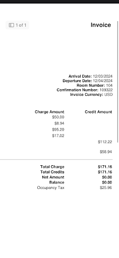Also be aware that you are charged a $100 incidental charge in case damage is caused in the room. It is released providing there is no reason to apply the charge to your card.
