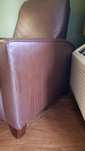 Read moreI guess I can't complain too much considering I paid $60 for the night (pre tax). However, here is what I found: The lobby was so obscure upon turning into the parking lot that I circled the entire building before finding it. The lobby looks as if it occupies an old guest room, can't be sure, but it was tiny and behind the counter was disheveled. It did smell nice and a sign on the wall said the sanitation score was 94.5. There was an unhappy guest disputing charges when I arrived, who stated that a colleague had left and stayed at Sleep Inn next door due to lack of cleanliness. I was somewhat shocked that a $100 deposit was required as I have stayed at much nicer places that did not, this was not an issue, just worth knowing ahead of time. The check-in process was quick and easy and the staff was friendly. Even the employee handling the guest dispute was extemely friendly, patient, and understanding. Upon arriving at my third floor room (306), I saw the maid cart at the next door. I opened my room door and before walking in I noticed the tv was on and the pillows we laying in a pile in the middle of the bed. I held the door open and when the maid exited the next room I asked her if this room was ready to be occupied. She peered in and said the pillows had no cases. When she reentered it appeared she noticed what I did, a sticky spill going down the side of tbe recliner (photo included). Nothing was said about this, though it did seem as if she was scanning the room for other issues. When she left I walked around the room and found a large hole in the bathroom door (photo), the dresser looks as though its had serious water damage (photo), dirty refrigerator door (photo), no helpful info on telephone (photo), and oddly a full kitchen with NO included necessary items (photo). The sign seems to indicate these items are an extra charge. I have never run across this at any other extended stay hotel. Even a coffee maker was absent. There was an iron and ironing board and the air conditioner cooled the room quickly. Perhaps my favorite part about this place so far is the fact there is a Barnes and Noble on the same road with no need to get on a major road. So there you are... I have only just arrived. Hopefully it will be a quiet night. (EDIT- added after stay) I slept well and had a quiet night. However other things of note for this "extended stay" hotel are: there were no laundry facilities, no breakfast, and there was no alarm clock, no hair dryer, and oddly, no hangers either. I just feel that any hotel who calls itself an extended stay should have these...