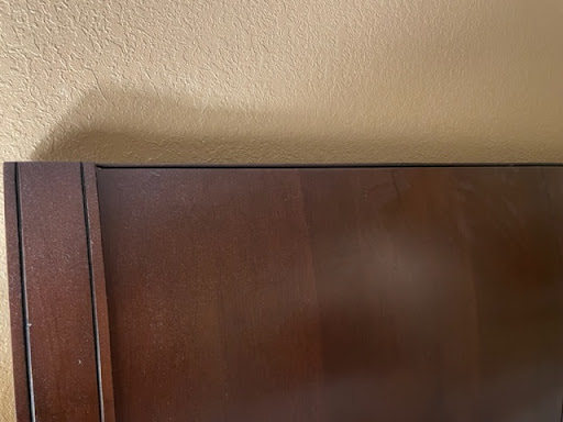 Unfortunately, cleanliness fell short in high places. Thick dust had built up on the top edges of picture frames over the bed & desk, on the bathroom picture, & above the closet area. You could rake it into piles—clearly untouched for many months.