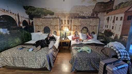 Read moreIf you're the kind of parent who likes to play and interact with your toddler you should probably save money and just take your toddler to your local splash pad. Any water ride an adult can go on a toddler can't and any water ride a toddler can go on an adult can't. We stayed the weekend of September 15th-17th of 2023 so we only had the opportunity to experience the indoor amusements. There are two indoor splash pads for toddlers. One splash pad has a pirate ship with three slides that look like they could support adults. I walked my toddler up there to go down the slide. I went to go next but got whistled at by a lifeguard that I wasn't allowed to. So if you want to play with your toddler you're stuck following them around the splash pad and not enjoying rides with them. Not really the idea of family fun. To be fair they do have a sign stating the height and weight requirements of the splash pad. Also, to be fair this sign is pointed away from the splash pad from a way that doesn't come from any entrance and the only way to see it is if you happen to walk around the splash pad around that corner or if you turn around from being in the small gift shop across from it. We could have gone on the lazy river but that's not my son's idea of fun. Mt. Olympus, please review and recosider the placement of your height and weight restriction signs as parents will make choices and assumptions if these signs are not in our faces. We don't have the time or free attention to look for them. Also, consider getting more co-parent/toddler amusements. I also seen responses from Mt. Olympus saying certain information is included in links off of their website and confirmation emails. While yes you guys are technically providing us with the information it comes off as SKETCHY and SUSPICIOUS and SCAM from the customers point of view. Putting that information people are feeling mislead on up front on your advertising would make customers feel the "resort" is HONEST. When we first checked in the actual process went smoothly. No one told us our bracelets opened our hotel room so we were confused about getting a key card for a while. When leaving check in, I got called over by a guy who said I had to see him after check in. Just ended up being guy from another hotel trying to get us to go to an open house for that hotel. I don't know why Mt. Olympus would allow that at their check in. It wasted my time as our vacation was already planned out and this guy was sucking up my time as my boyfriend and son were waiting in the car for me. We must have got lucky with our hotel room compared to other reviews. I had selected a themed room with a bunk bed and one queen bed and that was delivered. The room was clean and tidy. We were in Building 10 which is the same building the laundry gets done, so that's probably why this building was nicer compared to others. There was a nice 10 min path from the hotel to the park. My complaints about the room are definitely first world problem complaints but with that being said, the TV could have been bigger, there's no coffee pot but there is a vending machine you can purchase ice coffee or energy drinks for $2.50 each. The room itself was big enough for two adults and a toddler but could see it being too small for families bigger than that. There was a door going to the next room. We had deadbolt that door ourselves as it was not locked when we first arrived, which is kinda sus, and gave us a little of uneasy feeling. The room we had was 211000 which happened to be located under a stairwell. We heard people stomping up and down the stairs and talking loud all hours of the night. Since it's a stairwell we can't really complain about it. We didn't change rooms cuz we were already settled in but if you get this room I'd suggest asking for a different one right away if you're sensitive to noise while trying to sleep. Definitely bring your own blankets. Rooms don't provide comforters. Much more to say but no more characters to...
