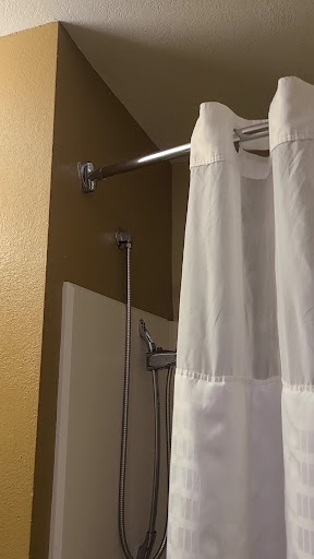 Read moreFILTHY. There is food on the counter, splatters on the cabinets. The linens are DISGUSTING. There's a towel hanging on the back of the bathroom door that does not look clean. Doesn't look like floors were vacuumed. There are spills/splatters/stains on everything. The shower curtain rod is broken leaving it impossible to close as the curtain just falls to the center where it's lower. It smells like feet. I couldn't stay in that room in that condition so I went to the front desk and the man working it was very apologetic, said sometimes they get marked clean in the system even when they hadn't been cleaned yet. He found us another room that was in fact clean. Sheets were lightly stained, but clear they were clean, just permanently stained, nothing looked broken - old, and worn, but not broken and filthy. In the morning I discovered, this room, like the first, the shower rod is hanging off the wall making the curtain bunch in the middle so that the water gets all over the floor. The tub doesn't drain so that I'm standing in my dirty water as I shower 🤢 I had to use 2 of the towels to sop up the water. The hair dryer doesn't work. I went to the desk on my way out for the day. There was a girl sitting at the counter on a laptop, completely ignoring me. When I said excuse me I have some issues I need resolved, she said VERY rudely, "I'm doing a training, you'll have to wait for Rosie" I spoke to Rosie, told her about the tub not draining and the hair dryer not working as well as I needed more towels since I had to use 2 of mine to clean up the mess made by the shower curtain not staying closed. I also mentioned the shower rod falling off the wall stating I understand that's not something she could likely get to right away, but please resolve the other issues while we were out. She wrote them down on her clipboard. When we returned - pretty late that night - the same man from the first night was standing outside ( cigarette break I think - maybe just getting some air) as we walked by he asked if we needed anything. He was very pleasant. We said no, as we had already discussed our issues with Rosie and assumed there had been some resolution. When we walked in our room it was clear they had not addressed one single problem I reported - didn't even give us more towels. At this point there was clearly no sense in bringing it up again- it was late, we just wanted to sleep and we were checking out in the morning. Absolutely would NOT stay here again and would NOT reccomend this hotel to anyone. Spend a couple extra bucks and...