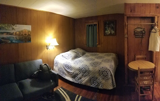 Read moreWe booked here as it was close to the ice castles. We stayed in the Birch Cabin which is across the road from the main office. You could see that it had been updated as it had pine on the walls and MOST of the windows were new, except the bathroom one which was leaking cold air so bad that I had to put a towel over the window. The bathroom fixtures were all new BUT the cold air that was leaking from under the tub and the baseboard was bad! We had to keep the water dripping in the kitchen sink all day as the temps were frigid but the it still froze! The kitchen had a decent stove and fridge, coffee pot and microwave. There were dishes and utensils and some pots and pans. The bed was very comfortable but the rest of the furniture left lots to be desired. There was a loft. As for hanging space it was fine for us but if you came for an extended stay you would not have nearly enough to hang clothes for 1 person!. The management was very nice and understanding when I had to call and report our frozen pipes. It wasn't to bad but there were some thing s that needed fixing and I got the impression that they were trying to upgrade as they went along. WIFI did not...