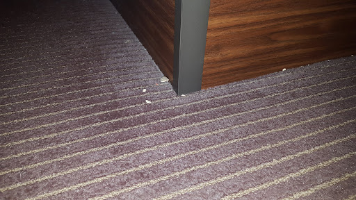 To begin with, I actually booked the day after we were supposed to check in, but luckily they had room, but I had to pay $30 more than planned. This place was nothing special. Had a rating of 8/10 on Expedia. I’d say 4-6/10 would be more accurate. Reception area desk was dirty. It needed to be wiped off. They tried to make the entry area appear new with the common area being new looking with granite & new tables. Textured tile floors were really dirty. They need to be scrubbed. I clean houses for a living & I know this flooring. Regular mopping won’t clean it. Supposed to be tan, not tan & black. We were on the 1st floor with a “pet friendly” room for 2 cats. Carpeted hall was dark & dreary & carpet needed cleaning. It had acoustic tiles with the popcorn ceiling effect. Needs a new lighter color wall color to brighten it up. Room door did not slam like it should for safety. You had to push or pull completely closed. Bathroom has a tile wall edge that needs to be dusted or wiped. Toilet isn’t even centered in the space! It’s @ an angle & the toilet seat is wobbly. Needs to be screwed in. Shower curtain is about 3 inches too long so you stand on the bottom part in the shower. Vent in ceiling was covered with dirty dust. Corners need to be cleaned out with a toothbrush as they are black. Tub was clean though. |The a/c control panel vibrates, but a washcloth under the lid made it stop. Air smelled musty. Long hair was hanging off the curtains. My cat was trying to play with it as the air blew it around. Beds were ok, but not great. Windows were cloudy because double pane seals were broken. Lamp next to bed on the left side didn’t work. Apparently a pet must’ve peed or something on the carpet edge that went up the wall by the bathroom as my cats had fun smelling it. Little sink had no drain plug, so things could easily fall completely down the drain. |Breakfast was ok, but nothing to brag about. Other previous Wyndham hotels were much better with their selection. The owners need to do a makeover with new paint to brighten it all up. Oh and the parking lot wasn’t...