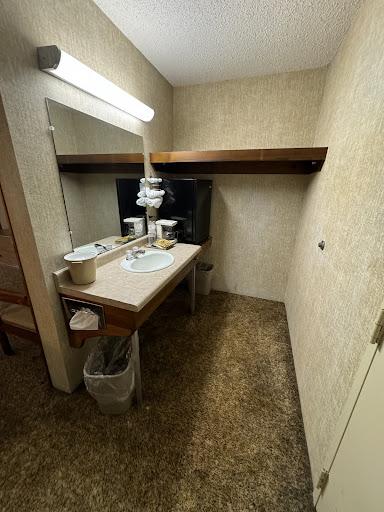 Read moreThis was like a room out of a horror movie! The only thing that was ok was the bed,even tho I'm pretty sure it wasn't clean. I just payed double what this room cost at Econo lodge and the bed was so hard I couldn't sleep at all!!! This carpet looks to be 50 years old no joke! The wall paper is hanging off everywhere, spider webs everywhere! The bathroom is just scary! The tub is black...the floor is black and wet! Looks to be blood or coke stains all over the walls the carpets are so stained there's a black ring around the walls! The balcony overlooking the river is beautiful, besides the spiders and this huge tub catching all the water from the AC. It's just sad that people are allowed to even rent these kinda of places out! The towels had hair and stuff on them. The doors are even broken. Do your self a huge favor and don't stay here!!! Also by morning my husband and i were both very sick and had to go by meds! We had a nasty case of respiratory infection! Had to cut our trip short so totally ruined our getaway! These people should...
