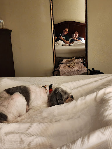 Read moreRecently remodeled in fall of 2024 with massive TVs and a dorm fridge. The rooms are nice with a jacuzzi tub in each room. The rooms are spacious and comfortable. They are pet friendly as well. For dog owners they have poop stations to get poop bags and dispose of the doggie fudge. Our dogs love the hotel rooms. But the dogs don't like the outdoors potty areas for whatever reason. The alpha male has no issues with the potty areas while the younger dogs are vain or something because they just want to bolt back to the room. Granted that they all grew up traveling like a family and are fine at other hotels. But they love the rooms and will have some dinner and it's off to sleep on the bed. But overall I would definitely call it a 3 star property because of lack of food in sight of the hotel. With the options of Wendy's and Waffle House. They used to have a Dennys on sight but has been closed for a while but hopefully Dennys is just remodeling and not closed for good. They really need a place like Dennys or an IHOP for the children and those who are exhausted from being on the road all night or day and need a good meal and some coffee to wake up and refresh the energy supply of the driver lol The beds seem to be very comfortable and new. Both my wife and I enjoy sleeping here for the night and we both have insomnia and we are able to get a good night's sleep here and it's very quite in general even when it's full up. Definitely better than most equal priced hotels and...