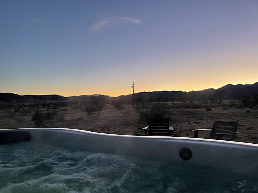 Read moreThere is no place better than Interstellar if you want to gaze at the night sky, and be one with nature. It was like my wife and I had beamed to another planet to escape earth for a few days. We even nicknamed the property as Tranquility Base for fun! Surrounded by panoramic desert and majestic mountains, the sunrises and sunsets were visually stunning. We loved soaking in the pristine hot tub, watching the sun rise over the surrounding Joshua Trees all around us. Our amenable and wonderful host, Kevan, even has an outdoor bed (a large tarpaulin firmly suspended between four huge wooden posts) for star gazing. We enjoyed several shooting stars nightly! This beautiful home is equipped with everything you need for your interplanetary visit. It was clean, spacious, and well decorated. The floor to ceiling glass was great as we were always able to see the mountains and desert even if we were lounging inside. If you need a serene, peaceful, magical place to soothe and nurture your body, mind, and soul, there is no destination better than Interstellar...