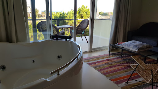 Read moreCon mi pareja reservamos una noche para una habitación con jacuzzi y estufa de leña con vista al mar. El check in era a las 15 horas y el check out a las 11 del día siguiente, como es habitual en la mayoría de hoteles. Al llegar y bajar del auto, en seguida salió un muchacho, quien se ofreció a ayudarnos a bajar algún bolso y nos guío a la administración para hacer el check in. Luego, nos mostró parte del hotel que podían resultar de interés, como la piscina, dónde estaban las reposeras y sombrillas, bicicletas que otorgan para dar vueltas por la zona (como ir a José Ignacio o al puente de la laguna garzón), lugar de descanso en el Hall y lugar para desayunar. Al finalizar, nos llevó a nuestra habitación, y nos explico todo sobre ella, como utilizar adecuadamente el jacuzzi, la estufa ya pronta con la leña y papel para encender, café y te de cortesía para hacerte en la habitación, colchón para utilizar en la reposera del balcón, etc. También nos comentó en ese momento, que el desayuno se podía pedir para la habitación (el mismo estaba incluído en la reserva). La habitación es espectacular, muy limpia y ordenada, una cama súper cómoda, la vista al mar es muy gratificante, la estufa le da un toque genial, el baño increíble con una ducha grande y con múltiples chorros de agua. El jacuzzi es (creo yo), lo más importante acá, muy grande, con un jabón líquido para espuma. Al estar pegado a la ventana posibilita ver el mar desde allí, dando la sensación de "paraíso" (ya que si se deja el balcón abierto, se escuchan las olas oceánicas). Cuenta con una televisión Smart, que tiene Youtube y Netflix, dos batas muy cómodas, aire acondicionado, número de WhatsApp para comunicarse con la recepción y clave de wifi, y frigobar. En la noche, pedimos ayuda a otro muchacho para que nos ayude a encender la estufa, quien fue muy amablemente y la encendió, quien de paso, antes de irse nos consulto si conocíamos algún lugar para comer y (como no conocíamos) nos comentó varios puntos de interés y que cualquier cosa, nos pasaba un mapa para ir allí. De todas formas, al querer descansar, pedimos la cena en el mismo hotel, para que lo lleven a la habitación (hay una carta en la habitación, con diferentes menús), el cual a pesar de ser un solo plato ya que se supone que era para una sola persona, vino contundente, y hasta nos llenamos los dos con el pescado y papas rústicas que pedimos y a un precio razonable. Al día siguiente, el desayuno que pedimos para la habitación, muy completo, con yogurt, jugo de naranja, café y leche, pan tostado, fetas de jamón y queso, huevo revuelto, cereal con y sin azúcar, torta de limón, frutas varias, y aderezos. Para finalizar, la estadía fue espléndida, un lugar de verdad para descansar, a un precio que quizá resulte elevado al inicio, pero luego uno se da cuenta, que lo vale completamente. Quiero destacar la amabilidad de Marcelo, Daniel y Javier, quienes siempre estuvieron atentos a nuestras necesidades. Es un lugar, al cual definitivamente...