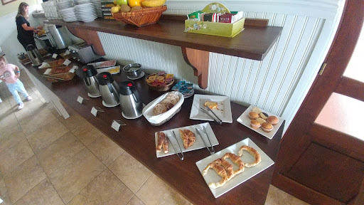 We were delighted with this newish hotel which was located within very easy walking distance of the ferry, even for me and my two adolescent children who were carrying luggage packs. We would have felt silly getting a cab. After reading the mediocre breakfast reviews, we were pleasantly surprised to wake to such a nice breakfast. By far the nicest we have had for quite awhile with yogurt, pieces of fruit, ham, cheese, cereal, hot cocoa, and even hot skim milk, in addition to all the typical cakes and sweets that we encountered in Argentina for breakfast. The breakfast attendant that Sunday morning kept an eye on the food and made sure plates at the buffet were full. I noticed that there was even a coordinating baby high chair in the cheerful breakfast room. Our triple room looked out on the first floor garden and was clean. We appreciated the conveniently engineered design with a small closet with shelves, convenient bedside tables and a two stool table. Even the bathroom was well thought out with a nice half wall in the bathing area, making it easy to reach soap and shampoo. The distance to the center of the historic town was ideal for us--we liked walking a bit (8-10 leisurely and interesting minutes at most) to reach the busy area and appreciated retreating in the evening away from the crowds. But, we were 3 minutes from the main street with lots of shops and restaurants. Bikes were for rent down the street. One point: bring your license if you want to zip around in a golf cart. As we are traveling for three months, mostly by bus, I did not as it would have been a hassle to lose. We were disappointed not to be able to rent a golf cart as, per hour, it was about the same cost as leasing three bicycles. Don't miss the sunset on the water at the very point of the peninsula in the...