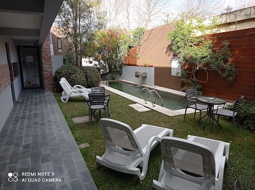 Fuera de la habitación hay pileta (pero no están climatizadas en invierno) y reposeras. También hay un espacio para desayunar (gratis) de 8 a 10, y en cualquier horario puedes servirte agua, té y mate cocido, también gratis. Vi que ofrecen otras cosas pagando, como café y tal. No me gusta el café, pero el precio era notablemente más barato que tomar cualquier cosa afuera (a la fecha, eran como 70-80 pesos uruguayos por café en el hotel, mientras que en cafeterías vi precios de bebidas calientes en 300+, sin propinas incluidas).
