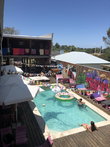 En general un buen hostel con un ambiente tranquilo, seguro y bastante cómodo. Es fácil llegar, está ubicado a 1 km de la playa y tiene supermercado, terminal de ómnibus y comisaría a menos de 100 metros. La infraestructura y el diseño del espacio de piscina y alrededores es lo mejor. Los baños se limpiaban al menos dos veces por día y la calidad de la limpieza era aceptable. La cocina era bastante espaciosa, con una cocina/horno semi industrial, dos heladeras y un freezer para compartir con el resto de los huéspedes, pero sin mucho más equipamiento; faltaban microondas, tostadora, ollas tamaños mediano/grande y cucharas. La habitación que me tocó estaba simplemente equipada con camas con su respectiva ropa de cama limpia y en buen estado y un ventilador. Lo suficiente para lo esperado del hostel, ya que tiene muchos espacios para pasar el rato fuera de la habitación durante el día. El servicio no fue malo, sólo mejoraría algunas cuestiones como el hecho que sólo acepten pagos en efectivo (USD ó UYU), o que el desayuno sea estrictamente hasta las 10am siendo que hasta las 4am hay fiesta en el...