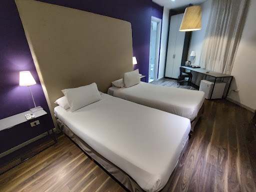 😡😠If I could give less than one star for this Hotel I would. How dare they advertise themselves as 4 stars 😠 and Bookings.com need to do some proper fact checking before advertising it as such. My husband and I have absolutely no problem with hotels that are older buildings and can have small bedrooms. It's par for the course in many big cities. We are not fussy complainers, and don't expect luxury for the price bracket we can afford. Once the room is clean, and has a decent bed, then that's fine, not a problem,,,, BUT,,, when a hotel has the cheek to put paying guests into what we got, then we have a problem!! I have never had to write a bad review before , as thankfully, we have always been more than pleased with our accomodations. We were only in Montevideo ( a most lovely city) for 2 nights, so thankfully didn't have to suffer the room for longer. Since staying there, I've now read other complaints about the pathetic size, the lack of maintenance and lack of overall cleanliness, so it's not like the hotel management haven't been made aware of this issue. When a room is so narrow you literally can't roll your suitcase between the end of the bed and the wall, then it's TOO SMALL!!! My husband had to lift his suitcase over the bed, and climb across each time, as the TV wires are hanging out and could easily be pulled. It's just plain bad management on their behalf that it's not addressed, and I don't want any false apologies. DO YOUR JOB, go around to the rooms and make sure they're being cleaned to an acceptable level. And until you've done that, stop taking peoples hard earned money, and putting them into rooms that are not up...
