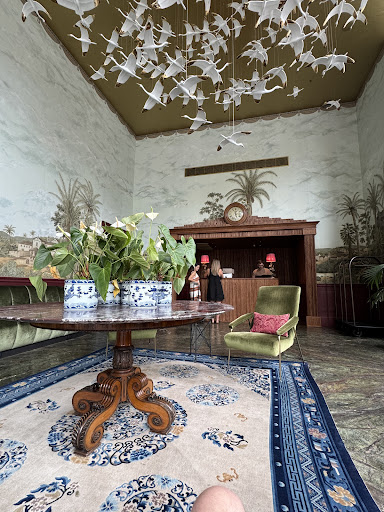 The bathroom deserves special mention: marble everywhere, heavy brass fixtures with beautiful end-cap bolts, and a custom shower system unlike anything I’ve experienced in a hotel: water flow so rich it felt like a private hot waterfall. Drainage was flawless, and the almond cream smelling towels and bath mat were thick, soft, and high quality.