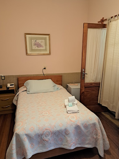 Read moreHotel bien ubicado a 120mts de la rambla y los principales restaurantes. Tiene 3 pisos sin ascensor. Tiene detalles que lo hacen un hotel familiar, como un piano en la sala. Todas las terminaciones son en madera así como en las habitaciones. Hasta el llavero es en madera. El jardín es amplio bien cuidado, tiene cocheras cubiertas y salida a la calle contralateral que lleva a la rambla, saliendo a la izquierda. El baño de la habitación de la época de los 50. Limpio. El comedor amplio, con varias mesas. Fuimos en contingente y a las horas de llegar ese mismo día, se desató una fuerte tormenta que inundó toda la zona céntrica, por lo tanto nos quedamos sin agua en la cañerías y el wifi por mas o menos 24hs. Los dueños suplieron la falta de agua entregándonos agua para el depósito del baño y botellas de agua mineral, pidiendo mil disculpas. Debo destacar, que a las 24 hs de la tormenta que inundó el jardín posterior, y no entró al hotel por las compuertas que pusieron, todo estaba limpio y en uso. Trabajaron muchísimo para que todo volviera a normalidad la...
