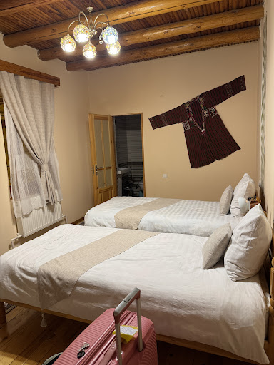 Lo único bueno que tiene este alojamiento es su ubicación, la amabilidad de la familia que lo regenta, y el desayuno, aunque sólo es hasta las 9!! Que estoy de vacaciones, por dios!||Las habitaciones son horribles, viejas, sucias, con ventanas y puertas que no ajustan y por donde entra todo el frío y el ruido.||Estuvimos primero en una que además el cuarto de baño era para reír por no llorar, la ducha directamente en el suelo, sin plato ni elevación, que eso se puede sobrellevar, pero es que no tenía ni cortina, con lo que así aprovecharán para lavar todo el cuarto de baño, imagino. La ducha no tenía gancho fijado a la pared, y casi igual es lo mejor ya que si no daría directamente al lavabo...un auténtico despropósito. El suelo desnivelado, por no hablar de todas las tuberías a la vista...||Nos cambiamos a la habitación de al lado, que aunque igual de deprimente, al menos el cuarto de baño estaba mejor distribuido y tenía cortina y gancho en la pared. Ademas, sólo tenía una ventana con lo que entraba menos luz y frío (la anterior tenía 2 para más inri), pero para eso estaba la puerta sin ajustar y con rendijas por toda la madera. Bajaron mucho las temperaturas de golpe y en la habitación hacía mucho frío, para añadir más, el mando del aparato de frío/calor no funcionaba y tuve que avisar porque nos estábamos helando. Por suerte se solucionó y pudimos poner calor, pese a tener que tragarnos más polvo por el aparato. ||Claro que el polvo y los ácaros ya estaban en la habitación desde a saber cuándo, pues la moqueta debía ser una fiesta de bacterias de lo poco limpia y vieja que es. Me pasé las noches tosiendo y con la nariz y garganta cerradas por el polvo. ||Te ponen sólo dos toallas de manos, si quieres una grande para ducha, la tienes que pedir. De todas formas, ducharse también tiene su cosa, ya que la presión del agua es de risa.||La wifi va a pedales, cuando va. Hay que meter una red nueva en el móvil y la contraseña, constantemente desaparecía la conexión y sólo conectaba más o menos bien en la terraza del desayuno.||Hablando de terraza...pese al frío que hacía, y lo temprano del desayuno, lo sirven al aire libre; teníamos que salir abrigados hasta arriba y comer a toda prisa para no pescar una pulmonía. Increíble.||Las camas obviamente duras como piedras, pero eso es más achacable al país que al hotel en sí, ya que los colchones que usan son de muelles rígidos y encima los ponen sobre tablas. Ahí no sólo no conocen la viscoelástica (en Kazajistán sí) sino que ni siquiera han oído hablar de colchones de muelles ensacados blandos, o de espuma...ellos acostumbran a sentarse y tirarse en el suelo con unos cojines con lo que imagino que los colchones serán el summun del confort...||El precio es bajo, faltaría que encima costase más, pero muy caro para ser el peor hotel de todo el viaje y casi en el que he estado nunca. He estado en otros países con hoteles de precio bajo y de estándares bajos pero ninguno tan pésimo como este. Y suerte que no somos tiquismiquis, si no nos hubiéramos ido corriendo a buscar otro, pero no queríamos perder tiempo en buscar algo decente. Yo sólo pido un mínimo de limpieza y confortabilidad, no una tortura que encima pago. De hecho un día ni siquiera entraron a hacer la habitación, con las toallas mojadas acumuladas, tuve que salir a pedir limpias y papel higiénico...Un despropósito tras otro.||||Lo reservé por su ubicación, precio, y buenos comentarios y mi marido y yo aún estamos flipando con ellos, no entendemos que nadie pueda calificar este establecimiento de excelente, ni siquiera como regular. Un mínimo de renovación y limpieza le hace falta pero ya. Prefiero menos amabilidad del personal y más habitaciones decentes, limpias y agradables...||No lo recomiendo ni para mochileros que van de tirados, ya que te vas a ahorrar más si duermes en un banco...
