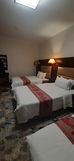 Read moreУютный комфортабельный отель недалеко от старой Бухары. До старого города нужно пройти около километра. Просторные номера в современном европейском стиле. В номерах есть мини-бар, вода, чай-кофе. Сантехника работает посредственно. Хорошие завтраки с обилием выпечки и фруктов. К сожалению, пообедать и поужинать в ресторане отеля нам не удалось, т.к. обеды и ужины, как нам сказали на стройке регистрации, необходимо заказывать заранее. На обед нам предложили пройти в кафе, которое расположено в здании отеля, но нужно было выйти на улицу и войти с торца здания. В кафе принимали к оплате только сумы, международные банковские карты - не принимали (предложили вернуться в отель, снять в банкомате нужную сумму и расплатиться наличными). Поужинать можно было в ночном клубе, который располагается рядом с отелем (практически в том же здании). Спа (сауна) в отеле на работала. В отеле есть банкомат, который принимает карты VISA и выдаёт доллары США (могут понадобиться для оплаты услуг отеля), узбекские сумы (понадобятся в городе). Если в отеле расплачиваться картой VISA, то ваш счёт увеличится на 3%. В целом, впечатление об отеле хорошее, но осталось ощущение некоторого запустения. Сложилось впечатление, что туристы в отель заехали несколько неожиданно для владельцев и сотрудники отеля заняты...