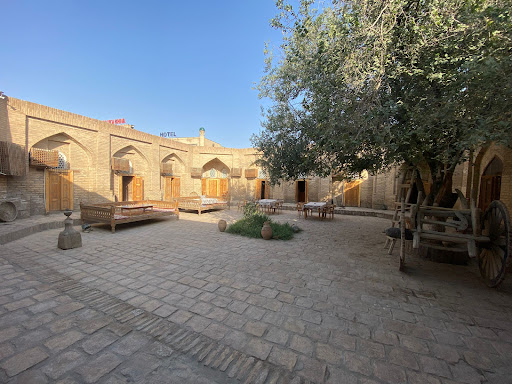 When you come to a country like Uzbekistan, this is the type of accommodation for an authentically local hospitality experience in a historically significant building. Originally a girl’s madrasa, the feel of the place is reminiscent of the better Portuguese pousadas, but quintessentially Central Asian in character. ||We picked this hotel because my cousin had stayed here a few years ago and recommended it highly.||Our room was basic, clean and quite spacious, with the changing area and bathroom set apart in a separate section. Stepping out into that rustic courtyard is a pleasure for the soul and amazing place to wake up to!|The breakfast spread was good.||The manager Babur was friendly and helpful and always smiling. When my wife became ill from something she had eaten, he personally organised a bowl of freshly cooked rice for her and recommended we focus on a green tea regime until she was better.||This is a must-try choice if you are looking for an authentic, no-frills hotel which is memorable in all the best ways and only a stone’s throw from the West Gate of...