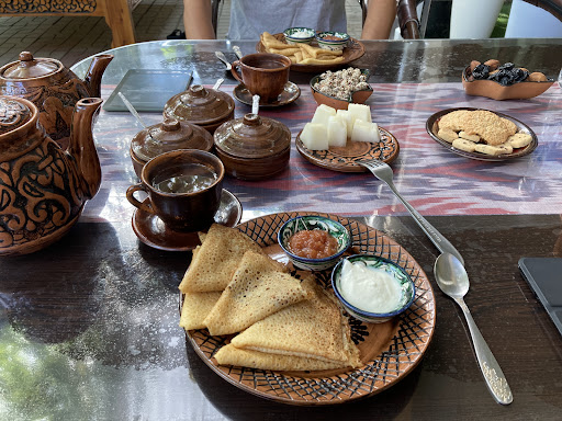 This is one of the nicest places I have ever been to in the entire world! When you enter the courtyard you find youself surrounded by a lush paradise garden with vines, flowers, trees and all kinds of plants including peaches, banana trees, persimmons and more. The garden really is astonishing, much more fascinating then in the photos.||The boss is super friendly, every morning he chops vegetables and fruits in the kitchen and makes delicious fresh breakfast, I especially loved his pepper and tomato omelette with dill. ||The boy named Mohamed can take you on a very interesting tour to see how people live in this city. He is 15 but speaks English and knows everything about the city, including transportation, where the ATMs are, the best food with locals.||This place is your reason to come to Margilan, you don't need anyting else. If I had had the time I would have stayed there for a week. And go on a tour with Mohamed!||This is advice from a veteran traveler that has...
