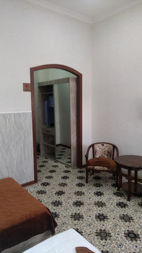 This hotel is located in the immediate vicinity of the Ulug Beg observatory, on the side of the very noisy highway to Tashkent/Termiz, when hundreds of trucks and cars run day and night, some 15 minutes away by taxi/ marshrutka from the city centre. The rrooms are simple, equipped with very hard beds, but absolutely clean as the modern bathroom. The very decent breakfast lets you forget a bit your disturbed night. It is freshly prepared. The staff is friendly but the hotel is clearly not dedicated to tourists, as might have thought our local travel agency (no comment on this). Prices are fair proviyou are paying the amount displayed in Sums and not the one in Dollars ( a factor two...