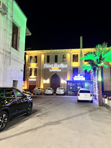 We was at the Medina Hotel a few days ago, and we had a wonderful experience. The structure is new and welcoming with spacious and clean rooms. It has a swimming pool where you can relax and have a drink. The breakfast is varied and is served on the top floor where you can enjoy a view of the madrasas. The staff is kind, we were welcomed by Damir and Hazamat, always available and attentive to our every request. I recommend this hotel!