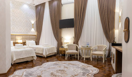 Read moreThe hotel is located within an accessible distance of monuments, in a safe part of the city. There are plenty of dining options, a bank, public transport and a shopping center nearby.|The hotel provides a free airport shuttle. The staff is very friendly and helpful, they helped me with the trip to Tajikistan and with the withdrawal of money. Despite the fact that the payment card option is listed on the Booking website, in reality this is not possible. Although the hotel has a payment terminal, it is not functional or no one knows how to operate it. I was therefore forced to withdraw cash from an ATM under very unfavorable conditions.|The breakfasts are very average. Dairy products and salami are not refrigerated, they are left at room temperature. The same hot buffet. The ox's eyes were cold after standing for a long time. The dishes were not labeled with names.|Each step to the first floor and basement was different in height and width. So dangerous.|There was a dusty carpet all over the room. Hangers - hooks for outerwear were missing. The toilet, sink and shower were in separate rooms within the room - quite impractical for a single room. The switches were centrally just behind the entrance door to the room. They were placed between the wall and the trunk at a level of about 70 cm above the ceiling, it was necessary to bend.|The set for making tea and coffee included a kettle, a cup and a glass. Also 1 tea bag on arrival. There was no sugar or coffee on offer, and even the tea was not replenished for the whole week.|The shower corner was technologically poorly designed and water flowed onto the floor and formed a puddle.|The sink with mirror lacked mirror lighting and an electrical outlet for a hair dryer or shaver. I also missed a desk with a chair in the room.|The hotel looks luxurious to the eye, but it's just...