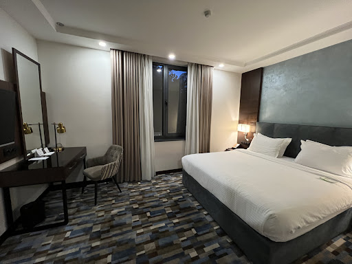 Read moreVery good hotel that was really clean, in what felt like a very safe area. The room was also very clean and large with a very comfortable bed, good shower etc. The location was good within 10-15 minutes walk of metro stations and near some decent restaurants and it was only a short and cheap taxi ride to the main attractions if you didn’t want to use the metro. The hotel restaurant and bar were also very good - we ate there on our 1st night and food and drinks were very good quality and the service and staff were also very good. The staff on reception were also very friendly and helpful, and several spoke English so there were no communication issues. The hotel is also next door to a bank/atm and a few minutes walk from a good Ucell phone store that we used (staff there were very friendly and helpful) as the queues for phone sims was very long at the airport. This means that if you use the hotel’s airport arrival transfer service you can skip the queues (and higher sim prices) and get your sim and cash once you're at the hotel. Although we arrived too early for check in they also let us store our bags safely so that we could start exploring the city. Very good value stay and we would definitely use again...