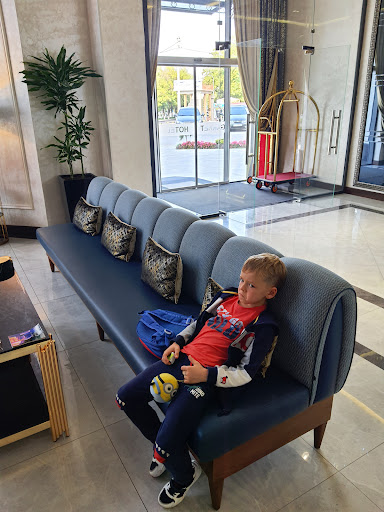 Read moreКогда есть с чем сравнить, то рука не поднимается поставить оценку выше. На самом деле это 3+. Могу объяснить, почему на booking com высокий рейтинг у отеля. Всё дело в том, что на ресепшене стоит табличка:" Поставьте нам оценку 10 и мы отвезём вас бесплатно в аэропорт" (!) Наивысший балл поставить отелю не за что, поэтому ехала на такси до аэропорта за 3 доллара. | Расположение отеля удобное, есть бесплатный паркинг, небольшой бассейн во внутреннем дворике. Ребята на ресепшене отзывчивые, подскажут, что надо, готовые решить проблемы гостей. Но вот ни медпункта, ни аптечки в отеле нет. Пришлось нам ночью искать круглосуточную аптеку.|Wi- Fi работает хорошо на всей территории отеля. В номере есть сейф, вешалки для одежды, тапочки, халаты, фен, полотенца, банные принадлежности( шампунь и гель для душа, расческа, бритвенный набор, зубная щетка, шапочка для душа), губка для обуви, чайник, чашки , чай и кофе для разовой заварки, питьевая вода в бутылках, небольшой холодильник, телевизор. Программы по TV транслируются на разных языках, в том числе и на русском каналов 6. Душевая кабина просторная, удобная. Кровати широкие, но жёсткие матрасы. На человека по 2 подушки. В номере тихо, не слышен шум с улицы. |В отеле есть спа- салон, хамам. Для гостей отеля 1 час бесплатно, но записываться надо накануне. Если сеанс больше, чем час, то доплата примерно 15$ ( спа- салон).Круглосуточно работает бар с напитками и снеками. |На сайте отеля и в других источниках указано, что есть ресторан. Да, есть, но не ждите, что вы можете туда придти и заказать обед или ужин. Этого нет. Только завтраки и не более.|Завтраки- с 7:00 до 10:00, шведский стол | Но в 7 часов еще только начинают накрывать, поэтому нет смысла приходить к этому времени. Ни кофемашина не работает, ни горячего ничего нет. Мало того, что в течении всего времени еда еле-еле тёплая. На завтрак 2 вида молочных каш. Но они всегда очень сладкие и повторюсь, почти холодные. За неделю нашего пребывания в отеле ни разу не была еда горячей. Ассортимент достаточный, чтобы наесться. Орехи разные, сухофрукты, творог, сметана, йогурт, 2 вида каш, плов, овощи тушеные, омлет, вареные яйца, несколько видов колбас, сыров, оливки, маслины, свежие огурцы и помидоры, маринованные грибы , фрукты( виноград 2 вида, дыня, арбуз, бананы, яблоки 3х сортов), кофе из кофемашины на выбор, чай. Много разной выпечки. Но вот лаваш никогда не был свежим.|Уборка не каждый день, но была. Полотенца меняли часто. Пополняли шампунь и гель для душа( маленькие разовые бутылочки). Убирались плохо, в туалете еще при заселении на полу валялись длинные волосы. Унитаз с функцией биде. |Кондиционер работал исправно, но почему то не регулировался. Мы его совсем выключили.|В целом: остановиться можно, но не ожидайте многого. За те деньги, что мы заплатили, можно...