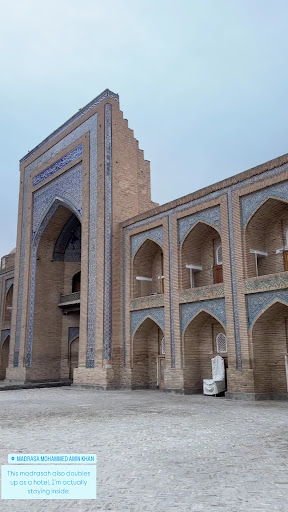 The hotel is inside a UNESCO world heritage listed madrasah. It’s a beautiful site. It’s right next to my favourite landmark and probably my favourite piece of Islamic architecture, Kalta Minor. Reception where helpful if you had any questions to ask but there was no information given at check in. Rooms were comfy. Nice hot showers……. if you...