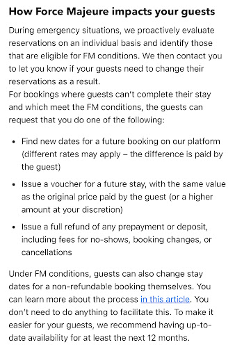 We were lucky enough to book the accommodation through a third party and on there website, it states black and white, there partners are required to offer a full refund in case of a force majeure. (I would suggest to the management to read the partnersâ policies before signing up and if you decide to work with them FOLLOW THEIR POLICY!!!! But just cos i know they are too lazy, i will attach the picture of that policy here)