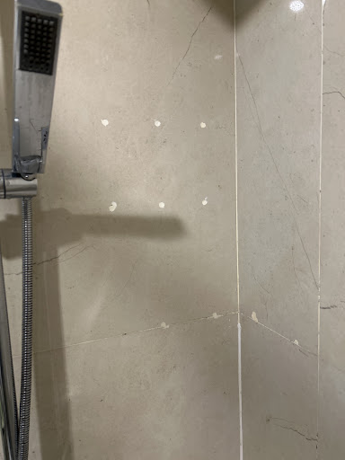 There isn’t even a rack in the shower to put your shampoo/ body wash. You can visibly see the old markings of the rack being patched up.