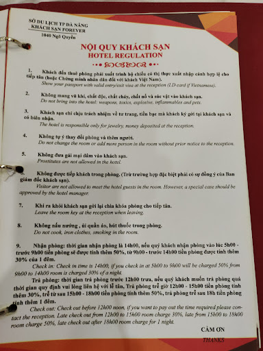 BEWARE!!!! The only good thing about this hotel was that the owner finally agreed to give me my money back after I threatened to call the police. List of issues: 1) This isn't a hotel. It's the home of a grumpy drunk (at least when I checked in) old man who rents out his rooms. 2) The owner, said grumpy drunken old man, wanted to keep my passport which is illegal. that was the first time I tried to back out and get a new hotel, but he said if I just paid cash he wouldn't need the passport. But then, , 3) after I paid cash, he refused to give me a receipt. He said in very dysfunctional broken English, "Bet-nam peeple no need writing down". I told him that he was wrong and since I've been living in Vietnam, people here want written receipts for everything; right down to a used square of toilet paper. Again, I said never mind, I'll get another hotel but he finally agreed to give me a receipt. But the receipt just had the numbers, "2,300,000" on it... no explanation of what I had paid for. But whatever, so I started to take my things up to the room. 4) I have a 6000USD$ bicycle. He said I could not take the bicycle up to the room because it might damage the room. But when I saw the room it already looked like the inside of a a cat's bum. Tiny, small bed, no extras, plain, windowless...mostly resembled the inside of a jail cell. So for the third time, I told him I would just get my money back and go elsewhere. He said he could not give me the money back and I could not keep the bike in the room. I threatened to call police on him for stealing my money (thanks google translate!!) and finally he gave me the money. 5)!!! Also, be careful using online booking services. Many will allow anyone to get on and advertise their "hotel" even if such person is renting a mere cardboard...