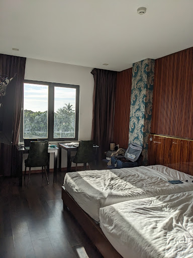 The hotel looks new and modern. An adequate amount of decorations and the colours on the wall. Love the little thoughts on these!||Love the bed, so comfortable, the bed, the pillows (big and small each) the duvet is so soft...||Can feel that the bed linens are extraordinary, they came in a set where the the pillow linens and duvet have the same piping colour.||Breakfast is great, only short-coming is with limited seats. I've waited for 15-20mins for a table for 2.||My Khe beach is just a few minutes walk.||Location wise is good for beach and view, the stretch of road outside of the hotel present a great view at night, with the cars and street lights.||Only 1 or 2 front office staff could speak in good english, the rest have difficulty in communicating in english, where the patience may...