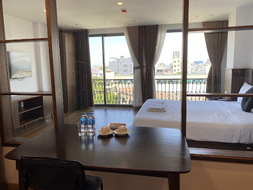 Read moreThis hotel is budget mid-range class of hotel and is fairly good value for money. I chose to stay here mainly because they are pet friendly (with no additional charges for the privilege) and also for its location (5-10 minute walk to the beach). The surrounding streets are full of bars, cafes, restaurants, and mini-marts, along with other shops. The hotel has some motorbike parking available outside (large umbrellas are the only covering), has an on-site laundry, a coffee shop (on the second floor) and a small elevator to access the floor levels. My allocated room was spacious, clean, and functional, though modestly furnished (a bedside table with lamp, a desk with chair, built in robes, large mirror, and a low bench top/counter with a small fridge). My room was air-conditioned, had a flatscreen TV (with Netflix app available), a large comfortable bed (not too soft, and not too hard), and a private bathroom (clean with hot water....but only supplied from a small/medium reservoir- enough for a decent shower if you avoid using the rainshower attachment). The hotel is situated close to a few late night bars, so some noise was audible, but nothing too disturbing (my noisy, rude, inconsiderate neighbour was far more noisy and disturbing....typical problem throughout SE Asia). Housekeeping is done only on request, so don't expect daily servicing unless you ask for it each day. Overall, I had no real complaints and enjoyed my 5 nights stay at the hotel, and was worth the price I paid (2.95 million...
